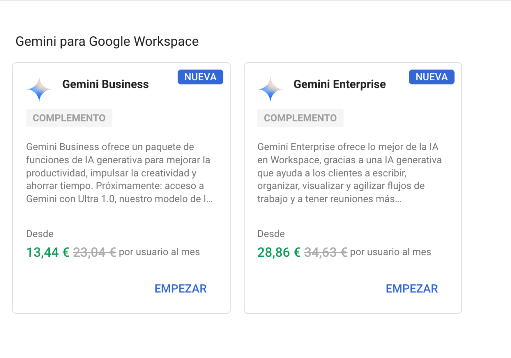 Estas dos opciones me ofrece mi cuenta de Google profesional para usar su nueva AI. Estoy más que interesada en escuchar vuestras recomendaciones, experiencias y opiniones 🥹